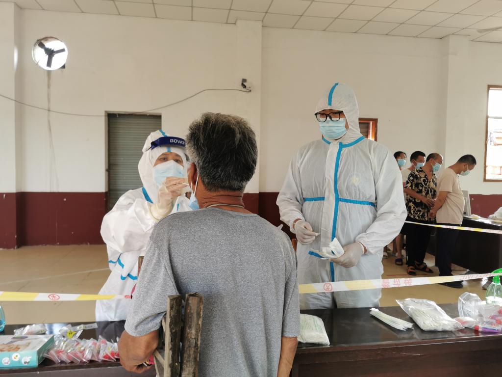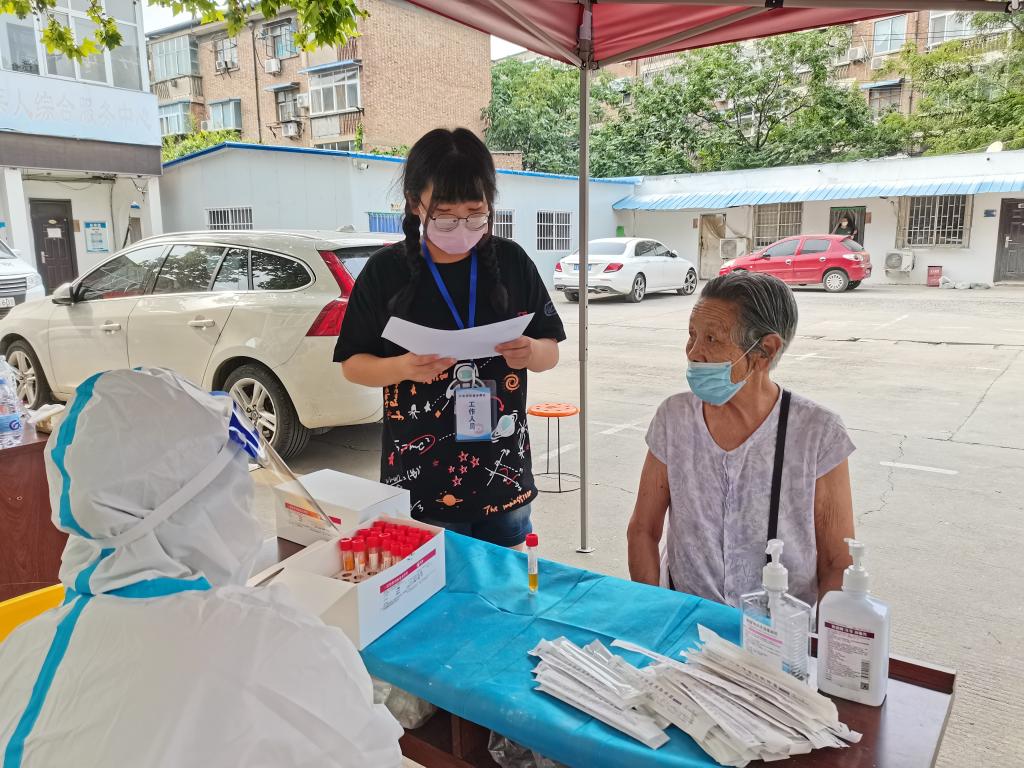 石大学生蔡馨蝶在社区协助医务人员开展核酸检测工作