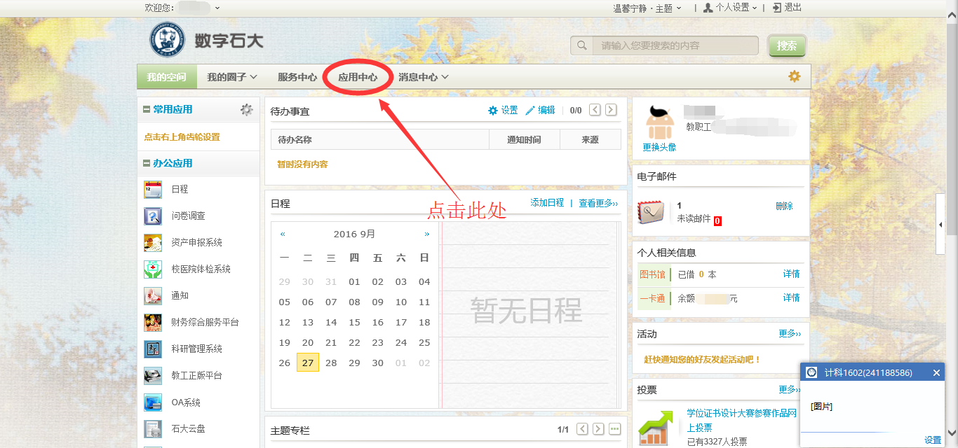 1.登录数字石大到应用中心中找到“教师虚拟桌面申请”,安装应用。