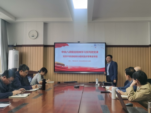 为深入贯彻中央八项规定精神学习教育,法学系党支部立足自身专业优势、邀请相关学科领域的党员教师结合研究专长深入学习中央八项规定精神,打造了“深入贯彻中央八项规定精神,以法治思维和法治方法加强作风建设”的系列微党课。首批微党课六将于4月24日进行专题授课学习,法学系全体教师、学院党委书记姚成郡参加学习,专题学习由法学系党支书记康雷闪主持。